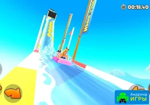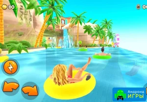 В игре представлен разнообразный мир аквапарка, наполненный крутыми и опасными горками. Вы сможете выбрать подходящий вид транспорта и отправиться на стремительный спуск вниз. Наберите максимальную скорость и установите рекорд трассы, который потом сможет побить ваш друг. Игра предоставляет возможность самостоятельно создавать трассы, выбирая элементы, которые, по вашему мнению, лучше всего подходят для соревнований. Кроме того, можно покупать разных персонажей и открывать для них яркие костюмы. С помощью мультиплеера вы сможете позвать друзей на состязания, чтобы проверить, кто первым доберётся до финиша. Не забывайте собирать на пути золотые монеты и бриллианты, которые позволят приобрести улучшения и новые виды транспорта. Сможете ли вы побить все рекорды и стать лучшим игроком в мире?Крутой геймплей и детализация