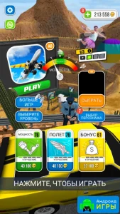После завершения уровня вы увидите прогресс: сколько осталось до конечной цели. На полученные награды можно улучшать параметры героя, а именно силу удара, траекторию полета и количество бонусов. По мере прохождения открываются новые локации. Всего их восемь, каждая со своими препятствиями и визуальным стилем. Новые карты добавляются с обновлениями, поэтому заскучать не получится.Выбирайте любого доступного персонажа, настраивайте его внешний вид и запускайте в воздух.