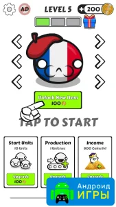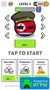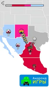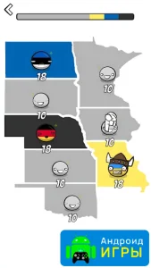 Country Balls Io: Battle Arena для Android — это стратегическая игра с внешне простым оформлением, но с не такой уж очевидной механикой. Разобраться в происходящем можно не сразу, ведь за внешней лёгкостью скрываются интересные элементы тактики. На этот раз игрокам предстоит выбрать одну из реальных стран и взять под свой контроль её развитие. Игра стартует с момента выбора нации, после чего вы оказываетесь на глобальной карте, где и будут разворачиваться основные события.