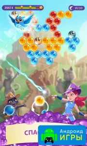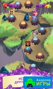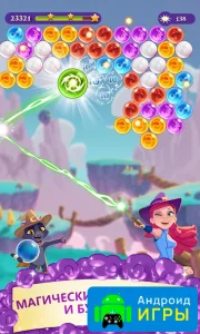 Существует множество проверенных временем жанров, которые обрели признание миллионов пользователей. Один из таких жанров — это логические игры, в частности "три в ряд". Однако Bubble Witch 3 Saga предлагает немного иную механику, не совсем такую, как вы могли видеть в стандартных представителях этого направления. Вместо привычного перемещения одинаковых элементов пальцем, здесь всё устроено иначе.Главная героиня управляет пушкой, стреляющей разноцветными шарами. Ваша задача — выстреливать ими в скопления аналогичных по цвету шариков. Если три или более шара одного цвета соприкоснутся, они исчезнут, а вы получите очки.