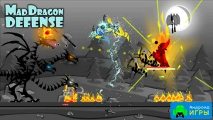 Mad Dragon Defense для Android — это увлекательная аркадная игра, выполненная в духе популярных проектов о Стикмане, но с заметным отличием. Здесь вместо знакомого всем человечка игроку предстоит управлять настоящим драконом. При этом в вашем распоряжении окажется не просто односущество, а четырехглавый дракон, каждая из голов которого обладает собственной разрушительной силой, связанной с определенной стихией: