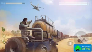 Игра порадует не только геймплеем, но и впечатляющей графикой. Высокое качество текстур, полная 3D-визуализация и проработанные спецэффекты превращают каждый бой в настоящую киношную сцену. Взрывы, стрельба, дым — всё выглядит реалистично и атмосферно. Управление выполнено в классическом стиле: с левой стороны экранный джойстик для перемещения, а справа кнопки стрельбы, смены оружия и использования дополнительных функций. Камера от третьего лица добавляет динамики и удобства в бою.Особенности