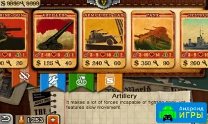 Игра порадует не только поклонников военных стратегий, но и всех, кто ценит интеллектуальные задачи и динамику событий. На нашем сайте вы можете загрузить специальную модифицированную версию приложения, в которой доступно большое количество денег. Это позволит быстрее развиваться и сосредоточиться на тактической составляющей игры.Особенности