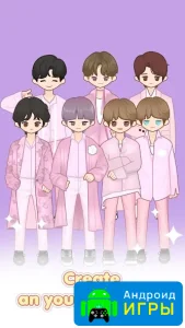 Огромный гардероб с разнообразными нарядами, обувью, украшениями и даже макияжем позволит создавать бесчисленные образы. Подбирайте одежду под настроение или стиль, вдохновляйтесь модой корейских бой-бэндов, экспериментируйте и удивляйте.