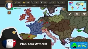 Countryballs at War является стратегическим игровым проектом для Android, где нужно будет превратить свою страну в мировую сверхдержаву. Можно выбрать любую из стран, которые существуют в нашем мире, и приступить к реализации перечисленной цели. Тут можно ввести внешнюю и внутреннюю политику. Следует тщательно постараться и сделать абсолютно всё, чтобы народ не взбунтовался и никто из иных стран не смог вас захватить. А на нашем сайте можно скачать взломанную версию с модом на бесплатные покупки.