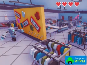 Внутри здания всё устроено не так просто, как могло показаться новичку. После закрытия по всему торговому центру активируется сигнализация, а по коридорам начинают патрулировать специальные охранные роботы. Пусть их внешний вид и забавен, но это серьёзные противники с продвинутым искусственным интеллектом. Любая ошибка и вас заметят. Чтобы избежать поимки, придётся наблюдать за маршрутами патрулирования и искать моменты для безопасного перемещения. Кроме того, здание буквально напичкано камерами наблюдения, которые необходимо обходить стороной. Вам нужно пробраться в нужный магазин, незаметно забрать цель и так же тихо скрыться.Геймплей и атмосфера