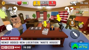 Графическая составляющая H.I.D.E. - Прятки Онлайн выполнена на высоком уровне: геймплей представлен в HD-качестве, в стиле, напоминающем Майнкрафт, и в полном 3D. Это создаёт особую атмосферу и погружает в процесс. Важно сохранять внимательность и действовать осторожно, чтобы достичь поставленной цели и выиграть матч. Эффекты выглядят качественно и удачно дополняют визуальную часть. Управление простое и удобное: слева расположен виртуальный джойстик для движения, а справа кнопки атаки, прыжка, взаимодействия и других действий.Скачав игру с нашего сайта, вы сможете интересно провести время и получить удовольствие от игрового процесса. На сайте также доступна модифицированная версия с полным доступом ко всем платным предметам.