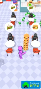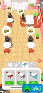 Графика Dream Restaurant выполнена в минималистичном стиле. Все сотрудники и посетители представлены в виде простых силуэтов, без лишней детализации. Камера расположена сверху, что позволяет наблюдать за всем происходящим в ресторане и контролировать процесс работы. Окружающий мир оформлен приятными цветами, создавая привлекательную атмосферу, которая будет радовать глаз и поднимать настроение.Если вы ищете интересный симулятор и хотите попробовать себя в ресторанном бизнесе, Dream Restaurant — это подходящий выбор. На нашем сайте доступна взломанная версия игры с большим количеством денег и отключенной рекламой. Установите игру на свое устройство и оцените следующие преимущества.