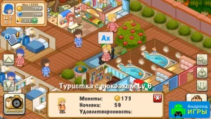 По мере прохождения игры можно расширять комплекс: строить новые комнаты, бары, рестораны, зоны отдыха и другие объекты. Уже существующие постройки также поддаются модернизации. Правильно выстроенная стратегия управления сделает ваш курорт популярным, а довольные посетители будут повышать его рейтинг. Несмотря на то, что задач много, все действия сводятся к простым касаниям экрана, поэтому освоить механику сможет каждый.