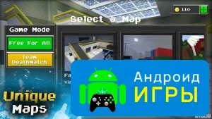 Пользователям предстоит встречаться с большим количеством соперников на различных картах. В игре реализовано несколько режимов, каждый из которых требует особого подхода и стиля ведения боя. За победы и поражения начисляются монеты, их количество зависит от результата матча и индивидуальных достижений во время сражения. Полученные средства можно использовать для открытия и приобретения нового оружия, которое помогает зарабатывать еще больше наград. Помимо арсенала, в игре есть система скинов, позволяющая изменять внешний вид персонажа и делать его более оригинальным. При этом важно учитывать, что большинство противников — это реальные пользователи.Классная пиксельная графика