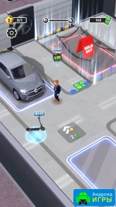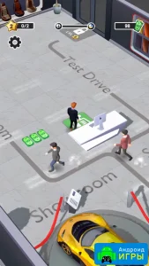 Со временем в автосалон начинают приходить первые покупатели. Машины можно реализовывать по выгодной цене, а после продажи на освободившемся месте легко разместить новое авто. Дополнительные бонусы доступны через просмотр короткой рекламы: они ускоряют развитие, например, дают самокат для быстрого перемещения или сумку с деньгами.С ростом уровня появляются новые задачи — тест-драйвы, мелкий ремонт, расширение ассортимента. Постепенно бизнес становится масштабным, и управлять им в одиночку становится трудно. В этот момент можно нанять сотрудников и распределить обязанности.