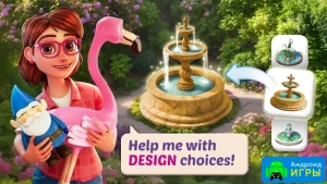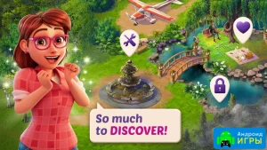 В игре также есть сад, который можно развивать и украшать. Выбирайте растения, создавайте пруды, устанавливайте фонтаны, высаживайте деревья и наблюдайте за развитием зеленой зоны. Проходите сотни уровней, улучшайте интерьер, расширяйте участок, заводите новых друзей и создавайте приятную атмосферу для всей семьи. На каждом уровне можно изучать описание задания, подбирать подходящий декор в магазине и совмещать это с прохождением головоломок.