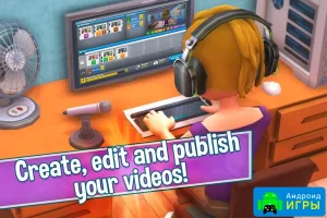 В этой игре каждый пользователь сможет пройти путь от новичка до настоящей интернет-звезды. Чтобы добиться успеха, придется придумать собственный стиль подачи материала, создавать оригинальные проекты и удивлять зрителей. Для этого доступно множество инструментов, позволяющих снимать разнообразные видео: от веселых челленджей и пародий до развлекательных роликов и новых форматов шоу. Успех напрямую зависит от того, насколько интересным окажется ваш контент и сможете ли вы удержать внимание аудитории. В процессе придется не только заниматься съемкой, но и развивать навыки, работать над качеством выпускаемых роликов, продумывать стратегии продвижения и следить за реакцией подписчиков.Крутая графика