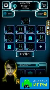 По мере прогресса игроки получают доступ к улучшениям лаборатории и уникальным технологиям. Можно усиливать реактор, увеличивая выработку энергии, или получать антиматерию для более продвинутых экспериментов. Также доступен апгрейд коллайдера, что открывает новые возможности для исследований. Все действия в игре влияют на развитие научного комплекса, судьбу его работников и эффективность работы лаборатории, что добавляет стратегии и планирования в игровой процесс.Простое управление и увлекательный кликер