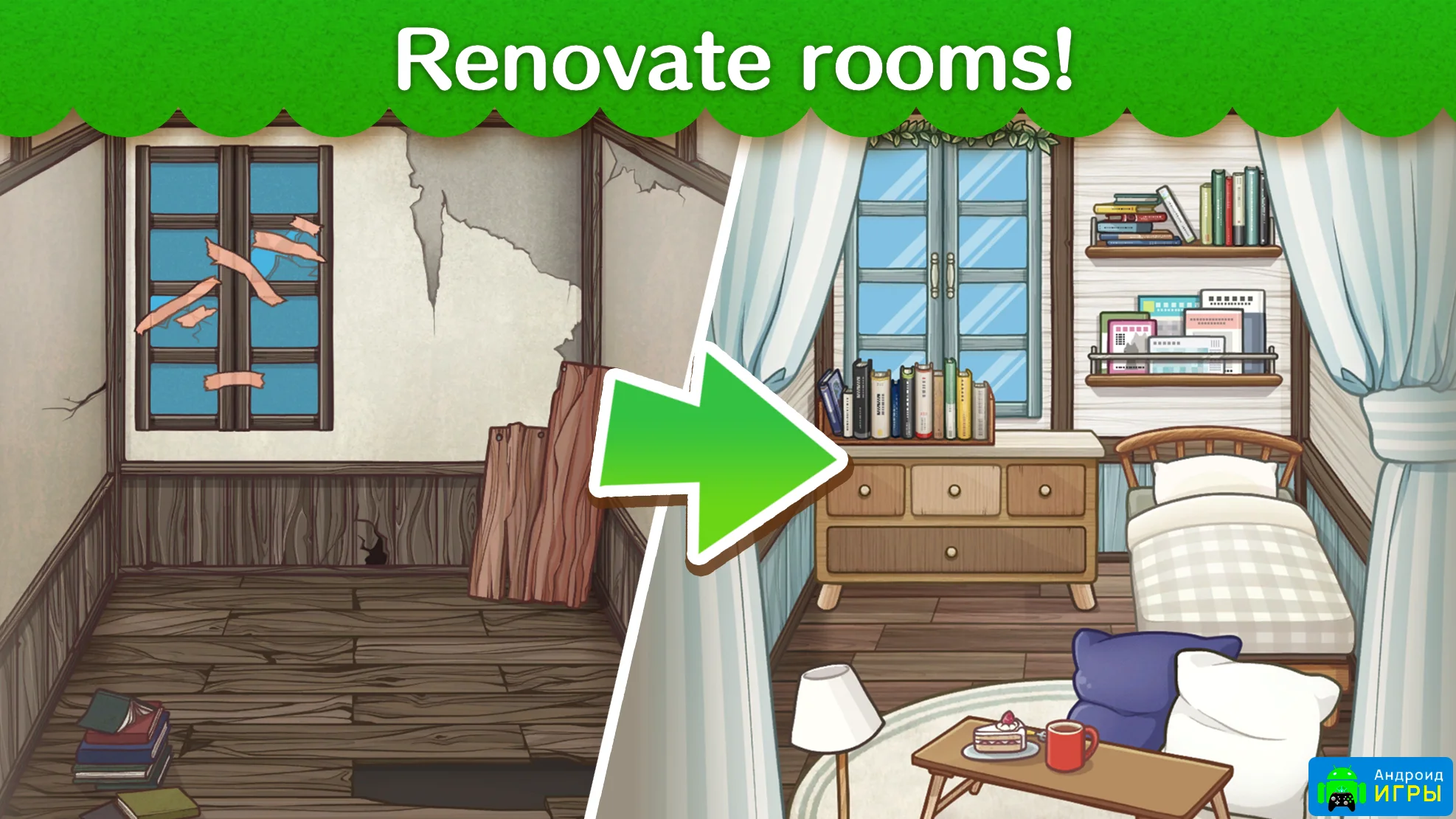После уборки наступает черёд ремонта. Каждая новая комната требует внимания и фантазии. Игрок сам выбирает, какими будут стены, какую мебель разместить, а также какие элементы интерьера использовать. Это отличная возможность проявить дизайнерский вкус, создавая уютные и стильные помещения. Постепенно вы будете переходить из одной комнаты в другую, шаг за шагом возвращая особняку его прежнее величие.Головоломки и заработок ресурсов