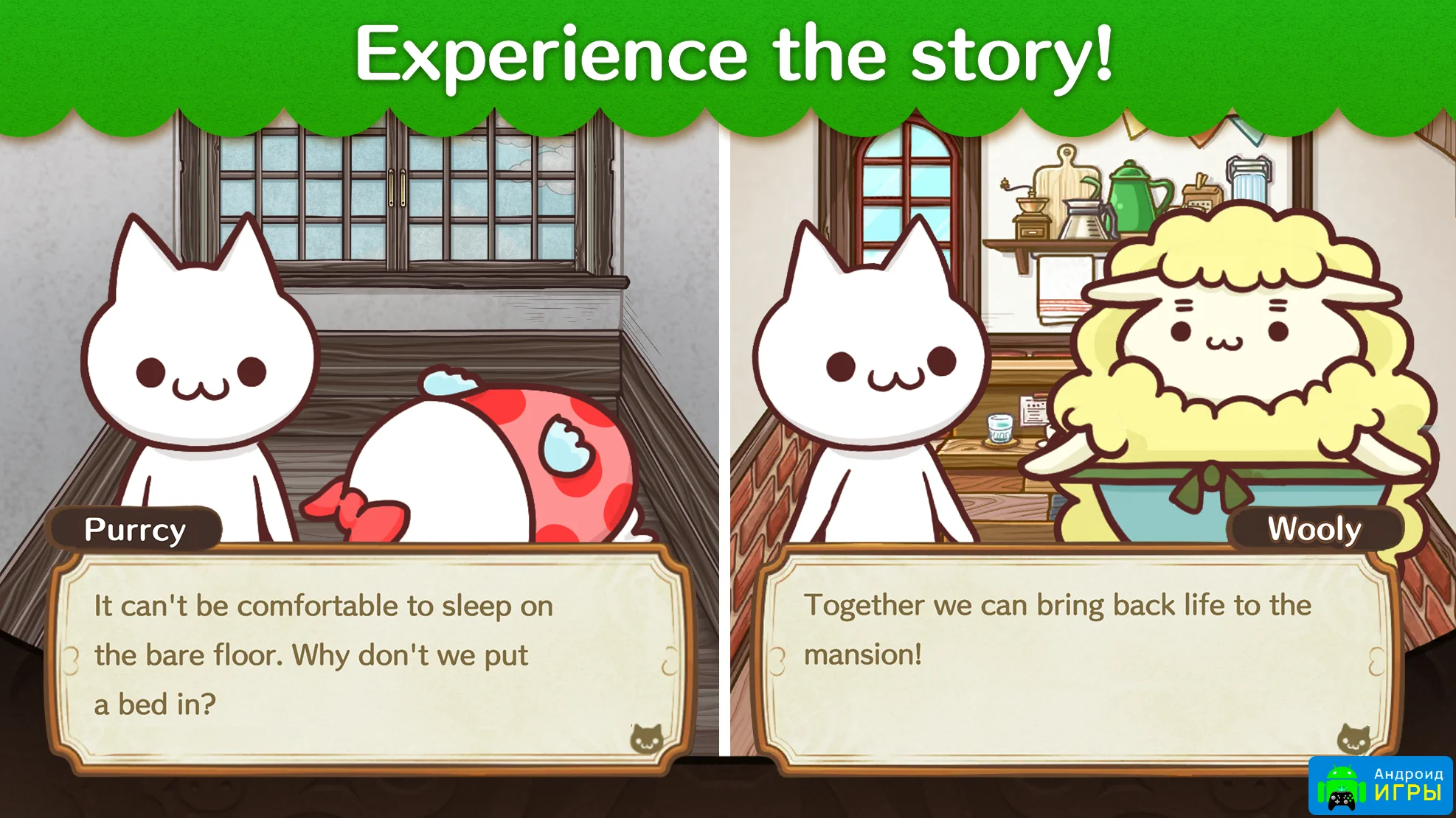 В самом начале пути игрок встречает управителя огромного поместья по имени Пуррси. Вместе с ним живёт очаровательный котёнок, который добавляет игре милости и лёгкого юмора. Первые шаги заключаются в наведении порядка в доме, а также в постепенном знакомстве с историей особняка. Параллельно вы будете узнавать тайны этого места и участвовать в его полном обновлении.Творческая составляющая