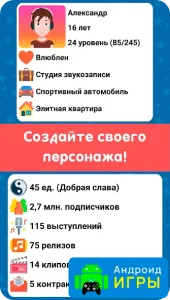 Симулятор Музыканта – это увлекательная мобильная игра для устройств на Android, которая погружает игроков в атмосферу музыкальной индустрии. Здесь вы сможете пройти путь от начинающего исполнителя до звезды мирового уровня, создать собственную группу или даже открыть полноценный музыкальный лейбл.