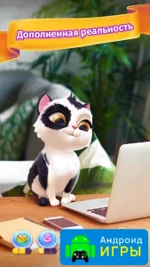 Особым развлечением является режим дополненной реальности. Вы можете брать своего маленького друга на прогулку, посещать друзей и наблюдать, как котик появляется в реальном мире через камеру смартфона. Это добавляет игре интерактивности и делает пребывание с питомцем еще более увлекательным.Скачайте игру прямо сейчас с нашего сайта и проведите незабываемое время вместе с вашим пушистым компаньоном, обучаясь заботе и создавая уникальные приключения для своего виртуального питомца.