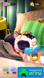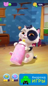 В начале игры вы сможете выбрать породу котенка и настроить его внешний вид: форму глаз, окрас шерсти и другие особенности. Не забудьте дать имя вашему пушистому другу! В дальнейшем вам предстоит заботиться о нем: кормить, купать, играть, укладывать спать, убирать за ним и наряжать по желанию. Игра развивает чувство ответственности и обучает уходу за питомцем, делая процесс увлекательным и полезным.Мини-игры и игровая валюта