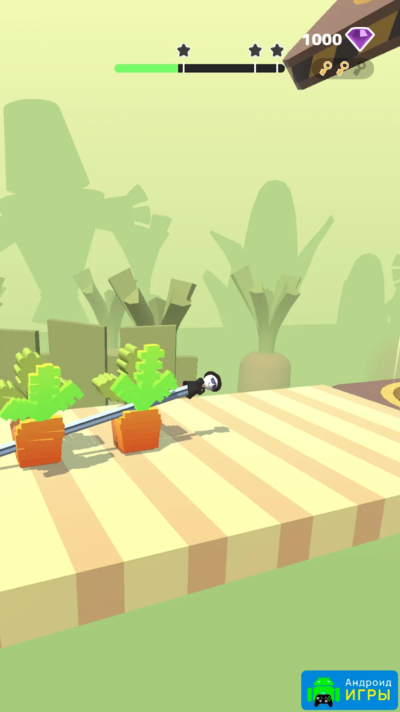 Возьмите под контроль своего персонажа и начните поднимать его над поверхностью с помощью пирамидки, составленной из кубиков. Главная задача — правильно рассчитать высоту конструкции. Когда вы остановите рост пирамиды, она вместе с героем упадет вперед, превращаясь в режущее лезвие и уничтожая все предметы, оказавшиеся на пути. Так шаг за шагом вы будете продвигаться к завершению уровня. Но важно учитывать: если выбранная высота окажется недостаточной и объект не будет разрезан полностью, или же наоборот слишком длинной, герой потеряет попытку, и прохождение придется начинать заново. Ваша цель — завершать испытания максимально эффективно, стремясь зарабатывать три звезды за каждый этап.Оформление