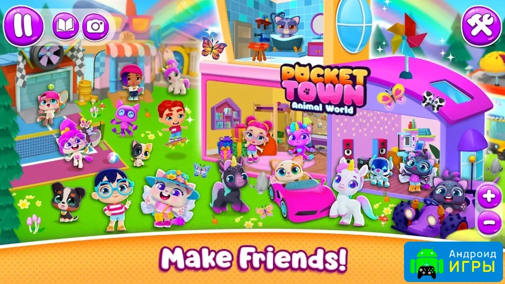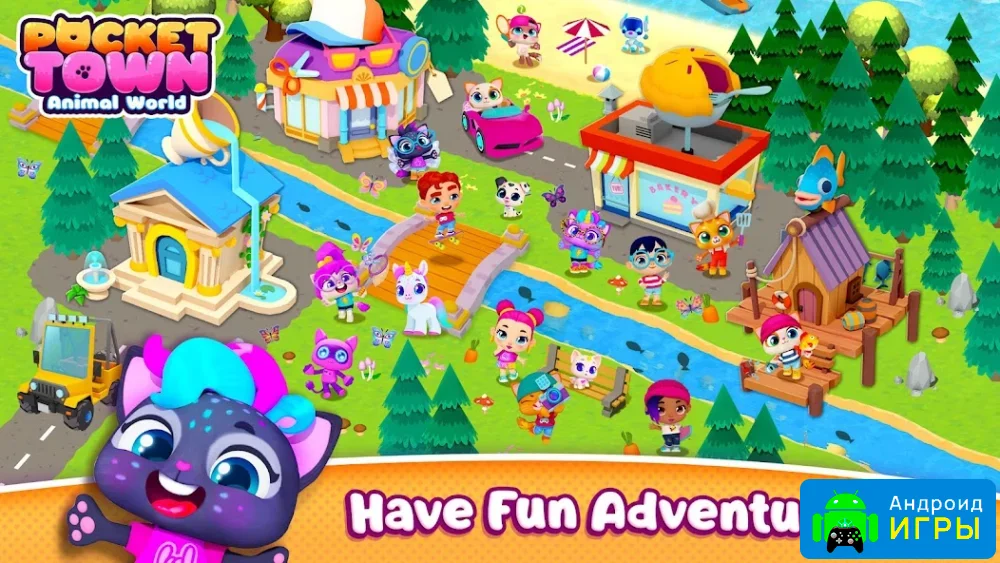 Pocket Town: Animal World — это добрый и познавательный игровой проект для детей, созданный специально для устройств под управлением Android. Юные пользователи смогут отправиться в фантастический мир, где живут забавные котики. Здесь ребёнок выбирает себе персонажа и вместе с ним отправляется в увлекательное путешествие по яркому городку, где его ждут необычные истории, весёлые задания и обучающие мини-игры.
