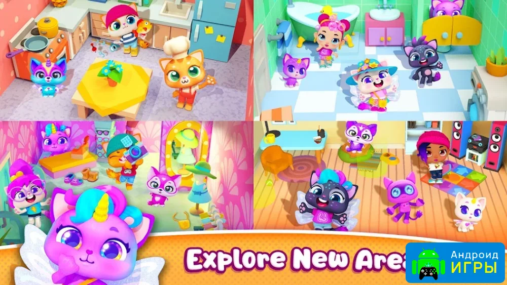 Главная цель игры заключается в том, чтобы дать ребёнку возможность самому придумывать сценарии и строить собственную историю. Вместе со своим котёнком игрок окажется в очаровательном городке, где можно знакомиться с жителями, помогать им в разных делах и заводить друзей. Каждое новое знакомство открывает дополнительные навыки и возможности. Игроков ждёт исследование красочных локаций, продвижение вперёд и создание своего уникального игрового сюжета. Помимо этого, ребёнку нужно заботиться о питомце и проходить разнообразные мини-игры.Уход за котёнком