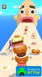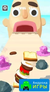 Sandwich Runner для Андроид — это веселая и динамичная игра, где пользователю предстоит проводить героя через множество локаций, одновременно собирая огромный сэндвич. В отличие от обычных раннеров, здесь главная цель — подготовить максимально вкусный бутерброд, собирая ингредиенты по пути к финишу. Герой движется по уровню, а ваша задача — направлять его так, чтобы каждый компонент попал в сэндвич.