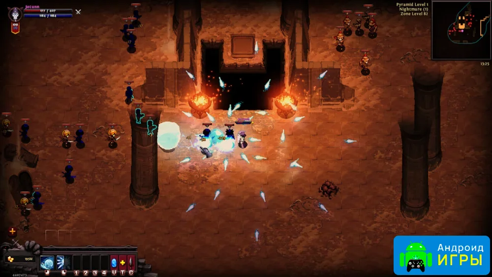 Визуальная часть Hero Siege: Pocket Edition выполнена в пиксельном стиле. Управление осуществляется с видом сверху, что позволяет удобно наблюдать за происходящим на экране. Эффекты и анимация созданы в духе классических аркадных игр, придавая геймплею атмосферу ретро и создавая приятное ощущение динамики. Атмосфера в игре продумана до мелочей: звуковое сопровождение подчеркивает напряжённые моменты боёв, а музыка усиливает чувство погружения.Система управления проста и интуитивна: все кнопки и меню размещены в нижней части экрана, что делает процесс игры комфортным даже для новичков. Благодаря этому вы сможете полностью сосредоточиться на сражениях и приключениях, не отвлекаясь на сложные интерфейсы.