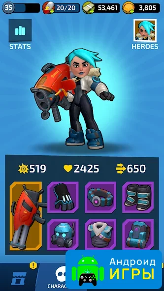 Вы окажетесь далеко за пределами Земли, исследуя необъятные уголки Космоса. На старте игры предлагается выбрать одного из нескольких персонажей, каждый со своими внешними особенностями и уникальными способностями. Применение этих навыков поможет вам побеждать противников и получать преимущество в боях. На первом уровне вы столкнётесь с ордами агрессивных инопланетян, но для вас предусмотрен широкий арсенал оружия и разнообразные улучшения: различные виды оружия, перчатки с уникальными эффектами, головные уборы и защитные элементы, броня и обувь, питомцы с особыми способностями, а также многое другое.Помимо обычных врагов, в игре встречаются могучие боссы, победа над которыми требует тактики, точности и использования всех навыков героя. Проходя уровни, вы зарабатываете деньги, которые можно потратить на улучшение экипировки или полное обновление персонажа.