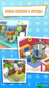 Графика Idle Frenzied Hospital Tycoon выполнена в мультяшном стиле, с милыми персонажами, яркой цветовой палитрой и продуманной визуальной составляющей. Приподнятая камера позволяет быстро перемещаться по больнице, контролировать процессы и наблюдать за всем, что происходит в клинике. Привыкнуть к ней можно уже спустя первые несколько часов, после чего эффективность игрового процесса сильно повышается.Особенности