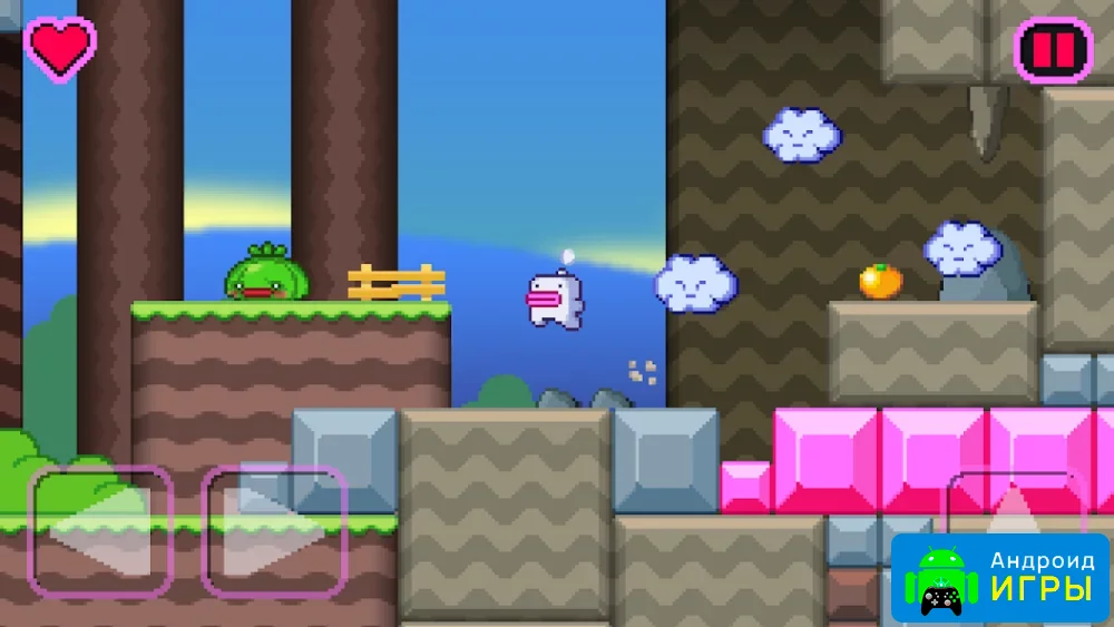 Mimelet выполнен в красочной 2D-графике с поддержкой HD-качества. Яркая визуальная часть делает каждый уровень интересным и насыщенным. Звуковые эффекты и анимации усиливают впечатление от игрового процесса, создавая живой и динамичный мир. Вид сбоку позволяет заранее оценивать обстановку и продумывать стратегию движения, а управление простое и интуитивное: слева расположены кнопки движения, а справа — кнопка прыжка.Особенности