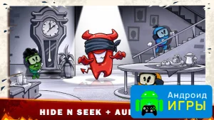 Визуально «Дьявол среди нас + Прятки с голосовым чатом» выполнена в приятном мультяшном стиле, который идеально подходит для игр с элементами ужаса и юмора. Приятная цветовая палитра, плавная анимация и качественные звуковые эффекты создают атмосферу лёгкого напряжения и азарта.Особенности