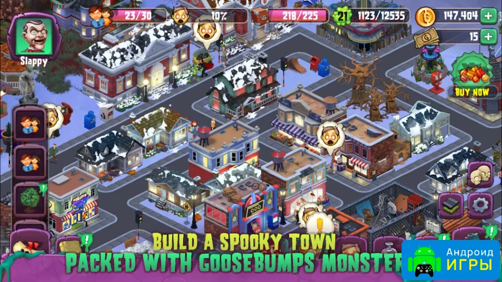 Город населяют самые разные существа: мумии, зомби, демоны, клоуны и другие фантастические персонажи. Они активно взаимодействуют с городом, приносят страх жителям и становятся частью повседневной жизни. Для каждого типа монстров требуется создавать особые условия, строить специальные здания и отправлять их на задания, чтобы они могли выполнять свои «монструозные» функции.Goosebumps HorrorTown - Monsters City Builder — это увлекательная стратегия с элементами симулятора мэра и управления городом, где монстры и люди сосуществуют в уникальном мире. Игра позволяет не только развивать городскую инфраструктуру, но и экспериментировать с жителями и монстрами, создавая неповторимую атмосферу ужаса.