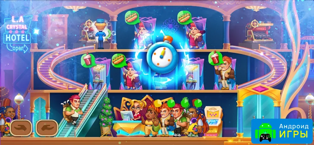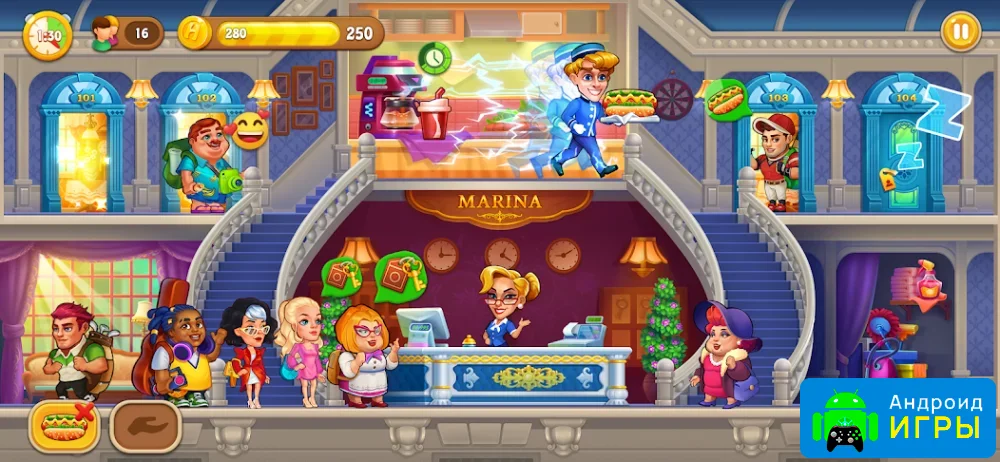 В начале игры у вас будет ограниченное количество персонала, поэтому часть работы придётся выполнять самостоятельно. Главная цель — удовлетворять все потребности и желания посетителей. Чем выше настроение гостей, тем больше новых клиентов захотят остановиться именно у вас. Полученные доходы следует вкладывать в развитие: нанимайте новых сотрудников, улучшайте интерьер и расширяйте услуги. По мере прогресса вы сможете открывать новые отели в разных уголках мира, превращаясь в всемирно известного владельца гостиничной сети.Для ускорения выполнения заданий и получения наград можно использовать специальные бустеры. Они помогут быстро справляться с пиком загрузки и обеспечат стабильный рост рейтинга. Благодаря этому игра остаётся динамичной и интересной даже для опытных игроков, которым важен быстрый прогресс.