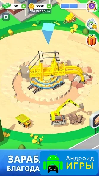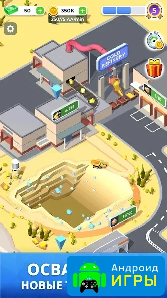 С каждым уровнем возможности вашего предприятия будут расти. Мир игры динамичен: меняются технологии, появляется новое оборудование и транспорт, а на рынке колеблются цены. Чтобы сохранить лидерство, важно вовремя адаптироваться. Покупайте современную технику, нанимайте более квалифицированных специалистов и автоматизируйте процессы.Постепенно добыча золота перестанет быть единственным источником дохода. В Mining Inc. можно открывать рудники по добыче алмазов, рубинов, нефти и других драгоценных ресурсов. Развивая разные направления бизнеса, вы создадите целую экономическую систему, в которой всё взаимосвязано.