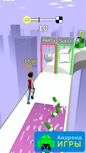 С самого начала игрок берёт под контроль молодого персонажа, стоящего на старте необычной трассы. Цель проста — добраться до финиша как можно более молодым. Но сделать это будет непросто: на пути встречаются различные ловушки и барьеры, при столкновении с которыми ваш герой моментально стареет. Избегайте опасностей и собирайте волшебные таблетки, витамины и эликсиры, способные вернуть вам молодость и ускорить продвижение.Каждый уровень в Run of Life становится настоящим испытанием на реакцию и внимательность. Чем быстрее и точнее вы будете действовать, тем больше шансов попасть в таблицу лидеров и установить новый рекорд. После завершения забега можно получить награды, открыть новые скины и сделать своего персонажа ещё более стильным и необычным.