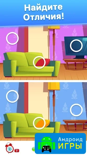 Визуальная часть Define – Найди отличия выполнена в приятной нарисованной стилизации. Все изображения яркие, милые и красочные, что делает процесс поиска отличий ещё более увлекательным. На экране одновременно отображаются только две картинки, без лишних элементов, что позволяет полностью сосредоточиться на поиске.На нашем сайте доступна взломанная версия игры с бесплатными покупками и бесконечными бонусами. Загружайте её на своё устройство и испытайте все уровни, подготовленные разработчиками, чтобы проверить внимательность и получить удовольствие от процесса.