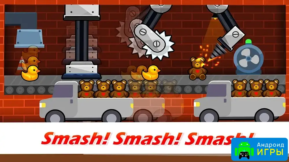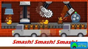 В игре каждая линия конвейера устроена предельно просто, но увлекательно. Сырье движется по ленте к ножам, печам и другим механизмам, где оно превращается в готовый продукт. Например, снеговики могут стать мороженым, а свежие ягоды — аппетитными тортами. Наблюдать за этим процессом не только интересно, но и полезно: правильное управление и своевременное нажатие на экран позволяет увеличить производительность и получить больше прибыли.Графика и управление