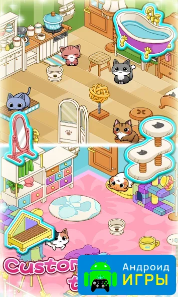 Cat Room - Cute Cat Games станет отличным выбором для вашего смартфона или планшета на Android, если вы обожаете котиков и хотите заботиться о виртуальных питомцах. Здесь можно не просто наблюдать за милыми пушистыми существами, но и активно участвовать в их жизни: кормить, играть, создавать уют и развлекаться вместе с ними.