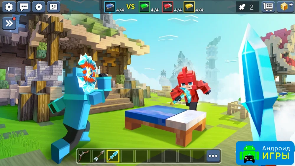 Bed Wars — это увлекательная и динамичная игра для смартфонов и планшетов на Android, сочетающая жанры экшена и стратегии с видом от первого лица. Игрокам предстоит окунуться в красочный кубический мир, где они смогут прокачивать персонажей, сражаться с противниками и развивать собственную базу.