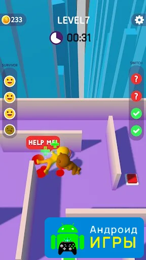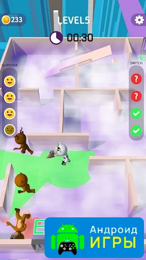 Игра построена на поэтапном прохождении уровней, сложность которых постепенно возрастает. Это делает игровой процесс более захватывающим и напряжённым. Выжившему предстоит находить выключатели, открывать ворота и использовать окружение, чтобы вырваться на свободу. Убийце же необходимо ловко преследовать жертву, предугадывая её действия и устраняя шанс на побег. Каждый уровень — это вызов для вашей реакции и логики, а успешное выполнение задач приносит массу удовольствия и адреналина.Графика и визуальная атмосфера