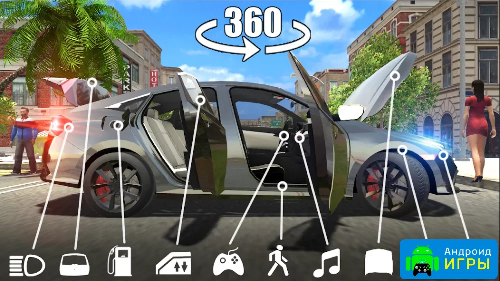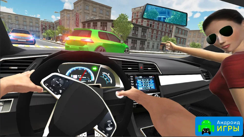 Хотя текстуры в игре не отличаются ультра-детализированным разрешением, Car Simulator Civic: City Driving компенсирует это качественной прорисовкой автомобиля и вниманием к элементам салона. Игрокам доступно множество настроек камеры, позволяющих менять ракурс и выбирать оптимальные виды во время езды, что делает процесс более живым и реалистичным.Основные возможности