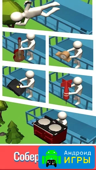 Главный герой стоит на высокой вышке с предметом в руках. Вам нужно лишь нажать на экран, чтобы увидеть, как тяжелый кирпич раздавит арбуз или разлетится на куски сложный объект. Игра поощряет эксперименты: повторные броски позволяют наблюдать за результатом, а замедленная съемка делает процесс особенно зрелищным. Все предметы можно коллекционировать и просматривать в удобном каталоге. Новые объекты открываются по мере прохождения уровней, позволяя удивлять друзей и экспериментировать с разными способами разрушения.Прокачка и улучшения
