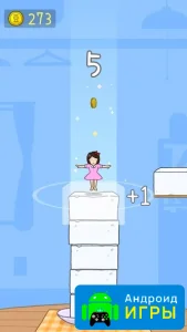 В отличие от обычных строительных игр, здесь игроку не нужно вручную строить башню. Приложение автоматически формирует уровни, а ваша задача — управлять героиней, делая её прыжки точными и своевременными. Важно рассчитать момент подпрыгивания так, чтобы персонаж благополучно приземлился на появляющийся блок. Чем выше и точнее прыжок, тем больше бонусов в виде золотых монет вы сможете заработать. Эти монеты можно использовать для покупки различных скинов, которые меняют внешний вид героини и делают игровой процесс ещё более интересным.Геймплей