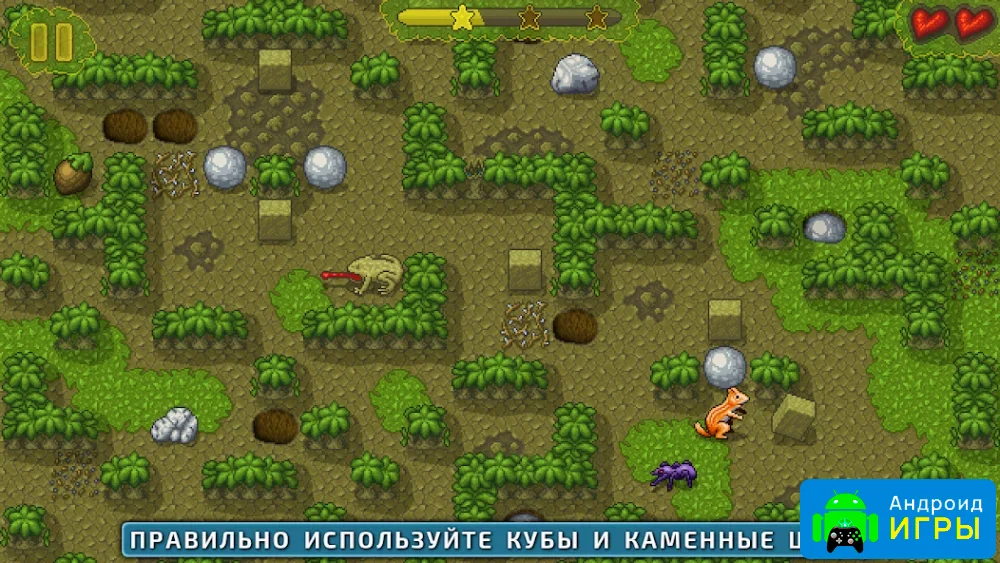 Игроку предстоит вести бурундука через различные локации, где встречаются и другие животные, представляющие опасность. Чтобы продвигаться дальше, необходимо перемещать объекты, такие как круглые камни и кубики, создавая безопасные пути для героя или устраняя угрозу со стороны врагов. Кроме того, не забывайте собирать семена, которые помогут подготовиться к зиме. Каждое новое задание — это мини-головоломка, требующая внимательности и логического мышления. Вам нужно правильно расставлять предметы, устранять ловушки и преодолевать ямы, чтобы безопасно продвигаться по уровню.Визуальная часть