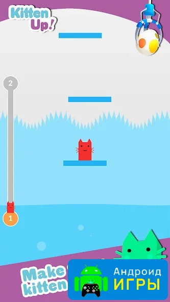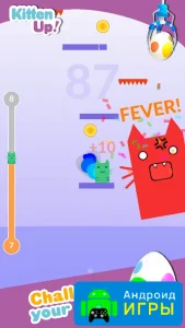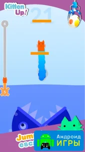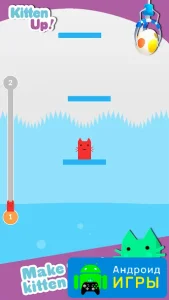 Kitten Up! для Android — это простая, но очень забавная игра, в которой пользователям предстоит управлять милым котиком и помогать ему взбираться всё выше. Начинайте игру и прыгайте по движущимся платформам. Следите за моментом, когда платформа под вашим персонажем окажется прямо под следующей, на которую нужно прыгнуть. Собирайте монетки по пути и обходите разнообразные ловушки, подготовленные разработчиками. Каждое новое препятствие делает игровой процесс более захватывающим, проверяя вашу внимательность и реакцию.