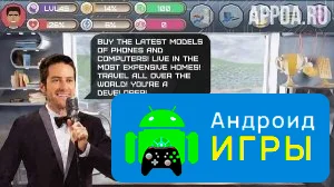 В процессе игры можно покупать новые телефоны, жить в престижных домах, набирать миллионы подписчиков в социальных сетях, участвовать в конференциях и зарабатывать значительные суммы денег. Не забывайте следить за жизненными показателями персонажа — вовремя отдыхайте и правильно питайтесь, чтобы избежать болезней и сбоев в работе. Создавайте приложения, выполняйте сложные задания и становитесь известным разработчиком в игровом мире.