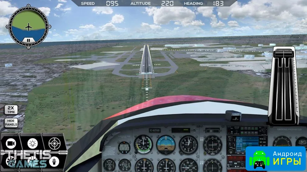 В этой игре игрокам предстоит примерить роль пилота и освоить около пятидесяти пяти моделей воздушных судов. Среди них есть крупные пассажирские боинги, небольшие легкие самолёты, а также вооружённые и боевые машины. Геймеры смогут выполнять разнообразные миссии в открытом мире, свободно перемещаясь по глобусу и открывая новые маршруты. Благодаря этому симулятору можно изучить основы пилотирования и путешествовать по всему миру, управляя самолетом прямо с мобильного устройства. Приборная панель, тумблеры и другие элементы кабины выполнены максимально реалистично, что добавляет ощущение настоящего полёта. Важная задача — мягко взлететь и приземлиться, что проверит ваши навыки пилота.Реалистичные полёты