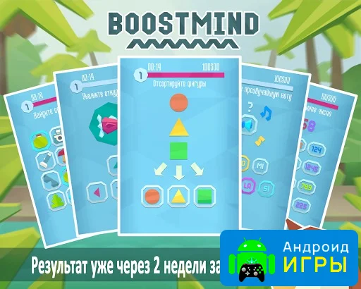 Boostmind – brain training для Андроид представляет собой интересный проект, в котором собран целый набор разнообразных головоломок. Здесь пользователю предлагается отправиться в большое увлекательное путешествие и проходить множество мини-игр, направленных на тренировки памяти, развитие концентрации и улучшение логического мышления. Приложение подходит и детям, и взрослым, поэтому пользоваться им можно всей семьей.
