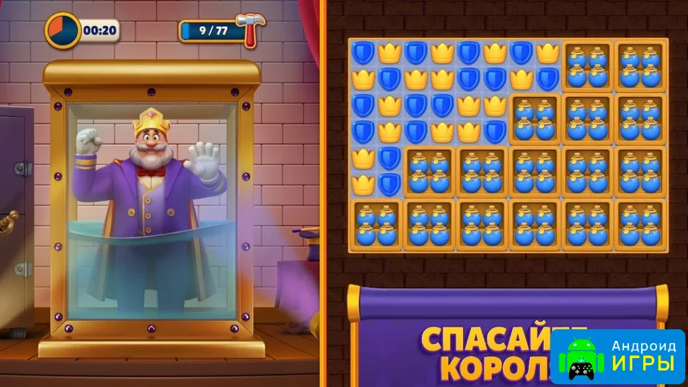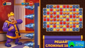 В Royal Match вы будете играть вместе с королем, который владеет обширными территориями и большим замком. Со временем строение утратило былое величие и требует обновления, поэтому вы берётесь помочь ему преобразить владения. Чтобы выполнять ремонт и украшение замка, необходимо проходить задания, основанные на механике «три в ряд». Вам предстоит перемещать элементы так, чтобы формировать сочетания из трёх и более одинаковых предметов. Создавайте удачные комбинации и получайте полезные бонусы в виде бустеров, которые помогут вам справляться с самыми сложными ситуациями.Вы можете скачать игру прямо сейчас с нашего сайта и окунуться в приятный игровой процесс. На сайте также доступна модифицированная версия, где вы найдёте большое количество бустеров, что ускорит прохождение и позволит быстрее обновлять замок.